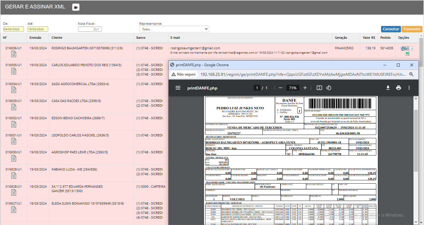 Sistema apto para gerar MDF-e, CT-e com busca automática das DANFES dos clientes via sistema.